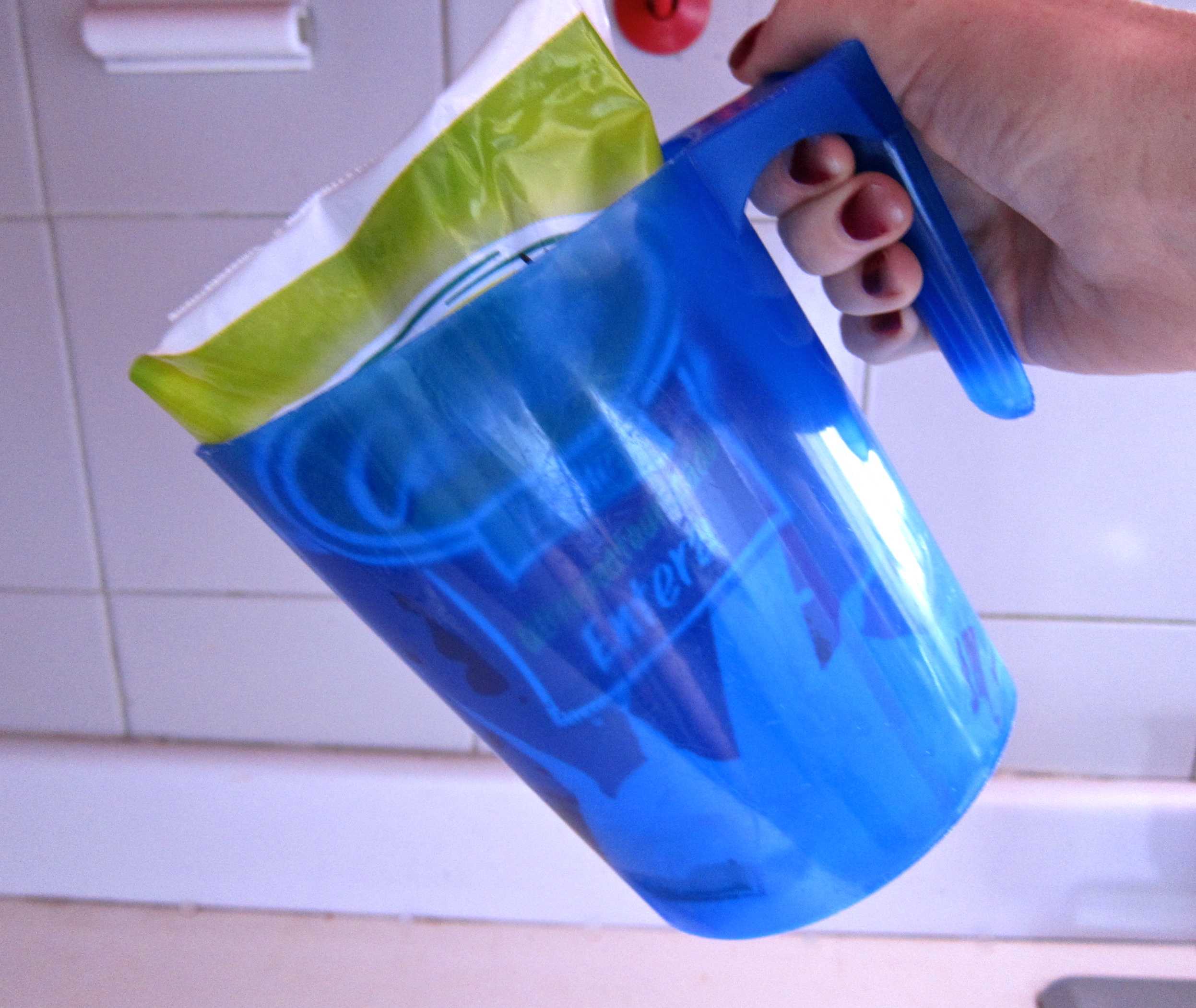 Number 6, a plastic container for bags of milk and yogurt. In Colombia, milk is not packaged in plastic jugs or cartons, but rather bags and occasionally boxes (but bags are much more common). So that the bag does not spill, you put it in these little containers with a handle.