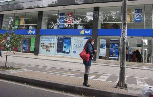 Woman wearing a surgical face mask-not uncommon around Bogotá